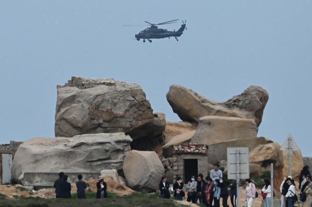 مروحيّة عسكريّة صينيّة تحلّق فوق مضيق تايوان (أ ف ب).