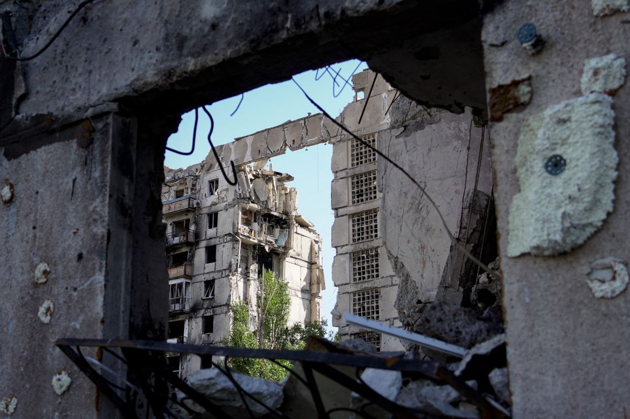 مبنى سكني مدمر في ماريوبول (8 أيلول 2022، أ ف ب).