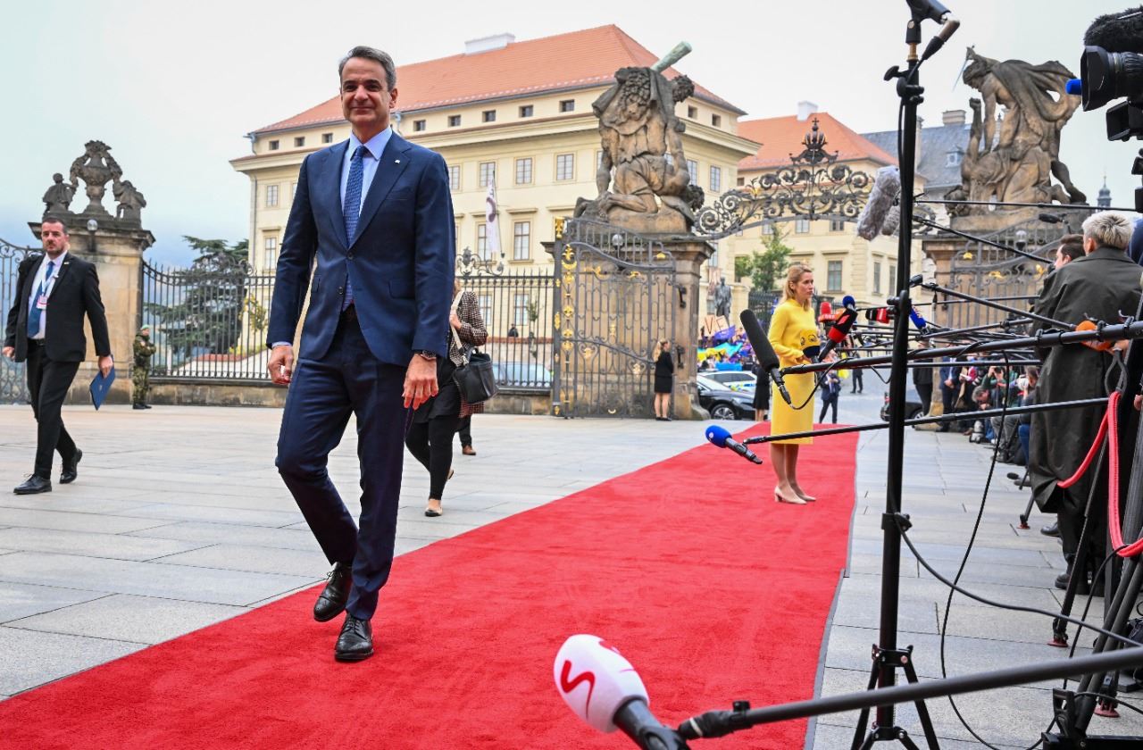 ميتسوتاكيس يصل الى القمة الأوروبية في براغ (7 ت1 2022، أ ف ب).