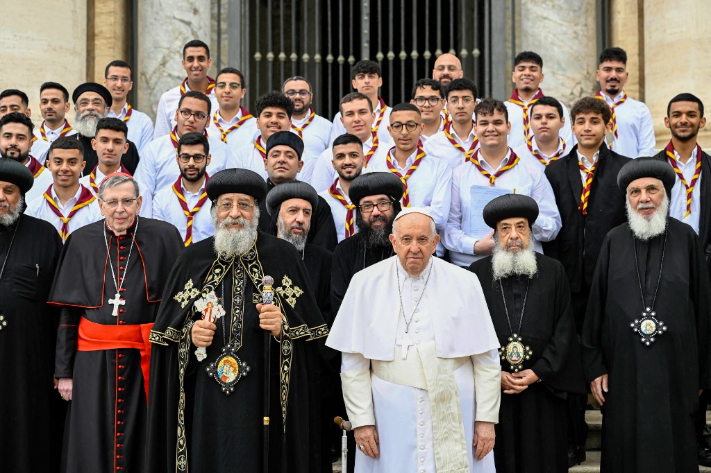 وقبل اليسوعي الأرجنتيني بحرارة بابا الأقباط في إشارة إلى الصداقة التي تربطهما قبل أن يفسح له في المجال للتحدث أولاً أمام الآلاف من المؤمنين المتجمعين مثل كل أربعاء في ساحة القديس بطرس في روما.