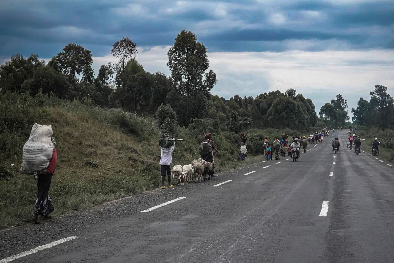 صورة ارشيفية- سكان ينزحون من قرية كيباتي وكيبومبا في أعقاب اشتباكات بين القوات المسلحة لجمهورية الكونغو الديموقراطية وحركة 23 مارس بالقرب من غوما (14 أيار 2022، أ ف ب).