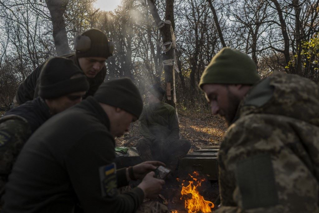 جنود أوكرانيون في الصفوف الأمامية (أ ف ب).