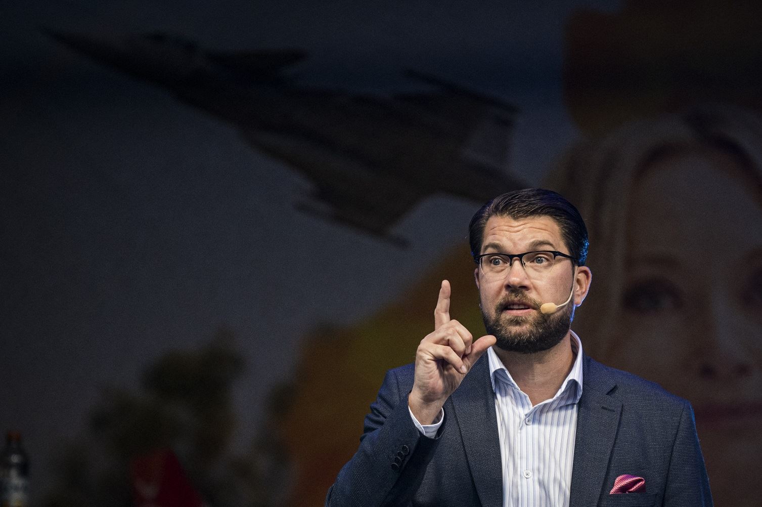 زعيم حزب ديموقراطيّي السويد جيمي أكيسون خلال تجمّع انتخابي في ستوكهولم (10 أيلول 2022 - أ ف ب).