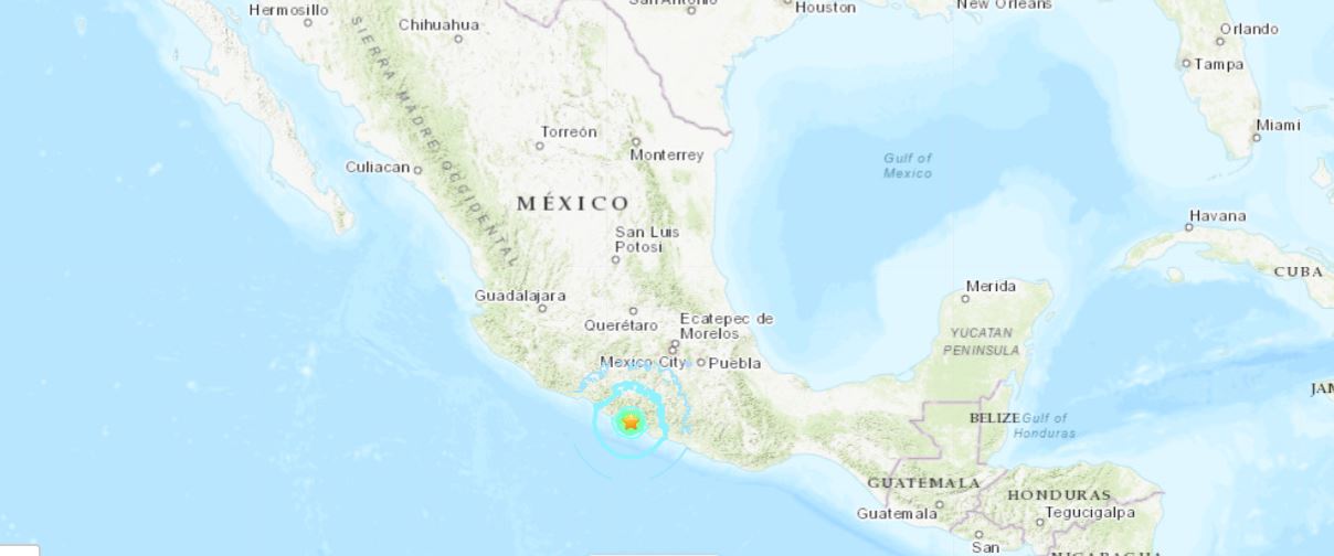 خريطة تظهر موقع الزلزال الذي ضرب مكسيكو سيتي (earthquake.usgs.gov).