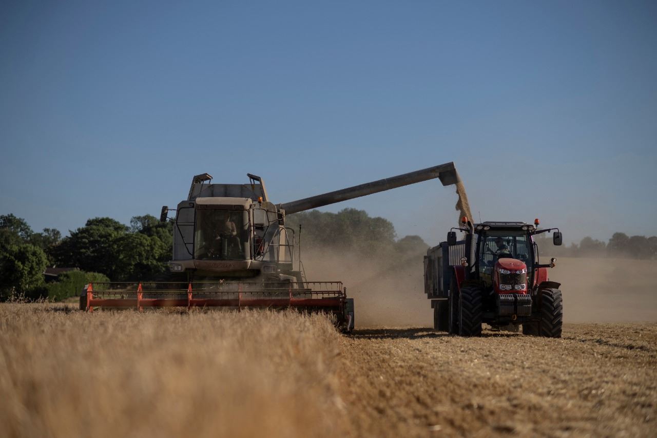 حصاد الشعير الربيعي في حقل قرب قرية واشنغبورو في لينكولنشاير شرق إنكلترا (11 آب 2022، أ ف ب).