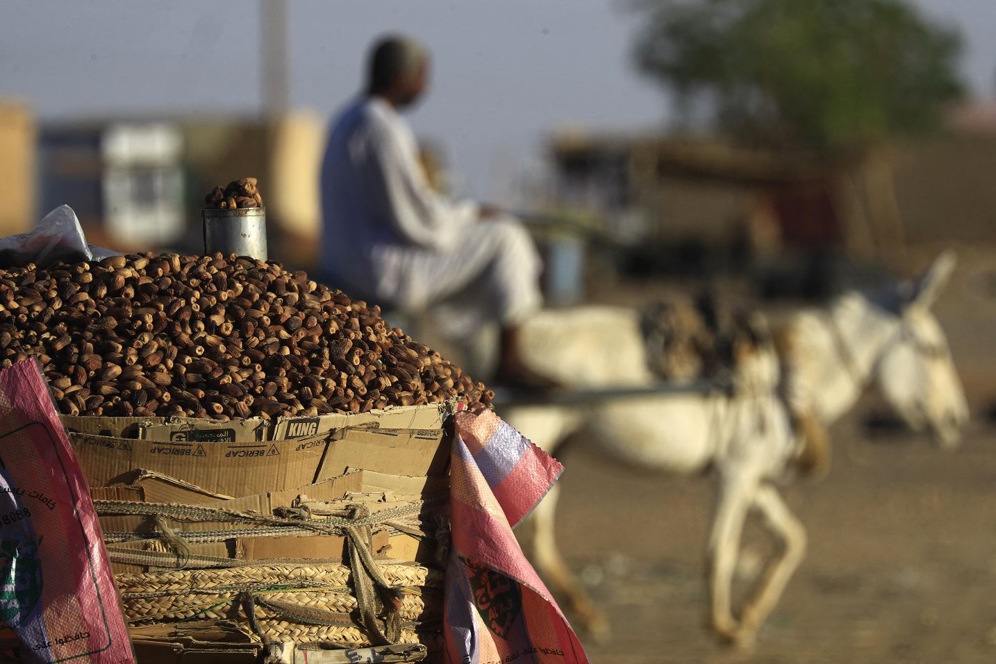 ثمار التمر معروضة في منطقة الملتقى بالولاية الشمالية في السودان ( 28 آذار 2023 - أ ف ب).