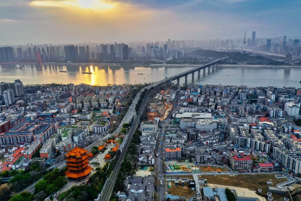 برج Yellow Crane في ووهان، في مقاطعة هوبى بوسط الصين (أ ف ب).