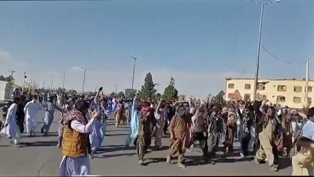 لقطة من فيديو نُشر في 11 تشرين الثاني 2022، ويُظهر متظاهرين خلال مسيرة في خاش في مقاطعة سيستان بلوشستان جنوب شرق إيران (أ ف ب).