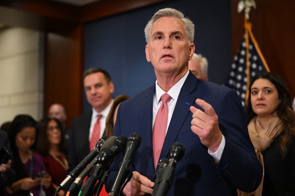 كيفن مكارثي بعد ترشيحه لمنصب رئيس مجلس النواب في مبنى الكابيتول، واشنطن العاصمة (15 ت2 2022 - أ ف ).