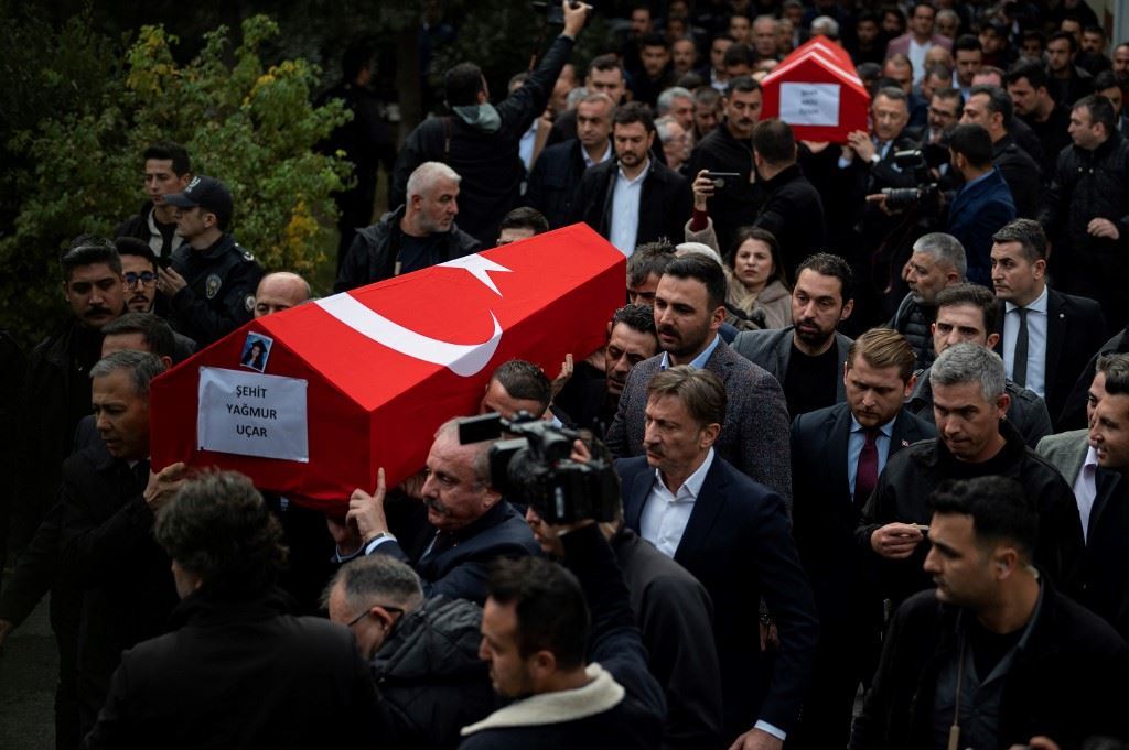 مشهد من مراسم تشييع أشخاص قُتلوا بانفجار شارع الاستقلال في إسطنبول (14 ت2 2022 - أ ف ب).