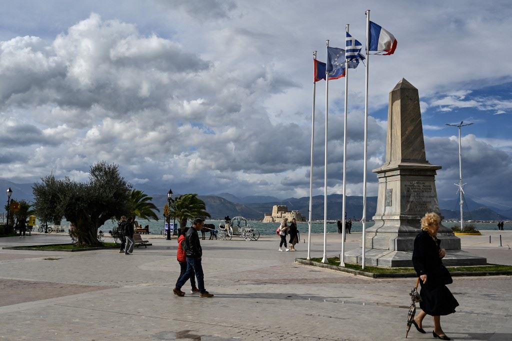 سكان محليون وسياح يمشون في بلدة نافبليو السياحية في اليونان (12 ك1 2022، ا ف ب).