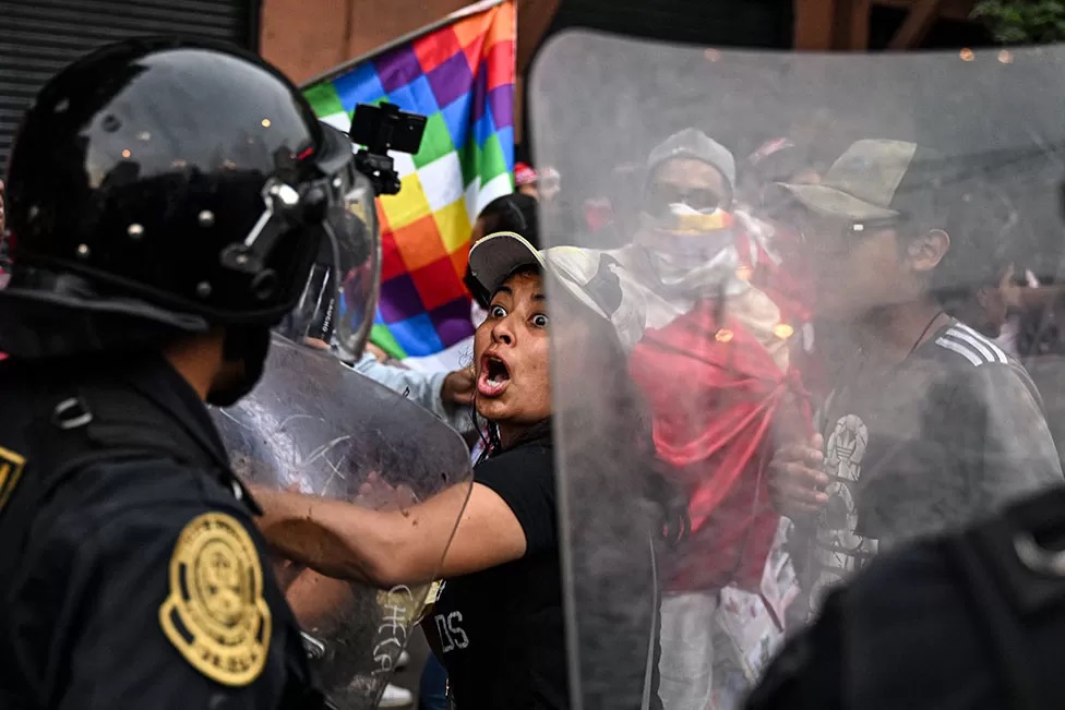 الصورة السادسة: وقوع اشتباك بين أنصار الرئيس السابق بيدرو كاستيلو وشرطة مكافحة الشغب خلال تظاهرة في البيرو تطالب بالإفراج عنه. وقد تم وضع كاستيلو رهن الاحتجاز والتحقيق معه ببتهمة التمرد، بعد محاولة فاشلة لحل الكونغرس. ومن المتوقع أن تجري محاكمته لاحقاً.