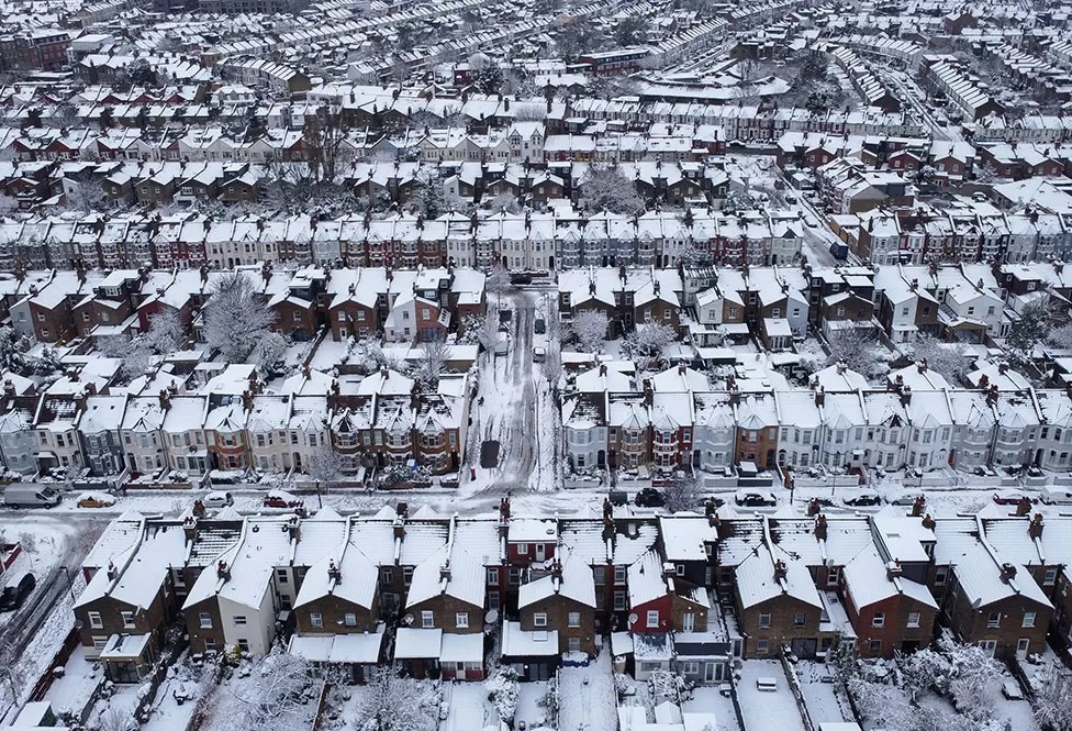 الصورة السابعة: صورة رائعة عن الثلج الذي اقتحم أجزاء من المملكة المتحدة، فغطى المنازل والطرقات في شمال لندن، وتسبب باضطراب في عمليات السفر.