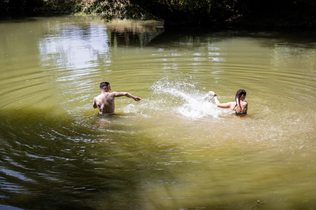 مواطنون يسبحون خلال موجة الحرّ التي تضرب أوروبا (أ ف ب)