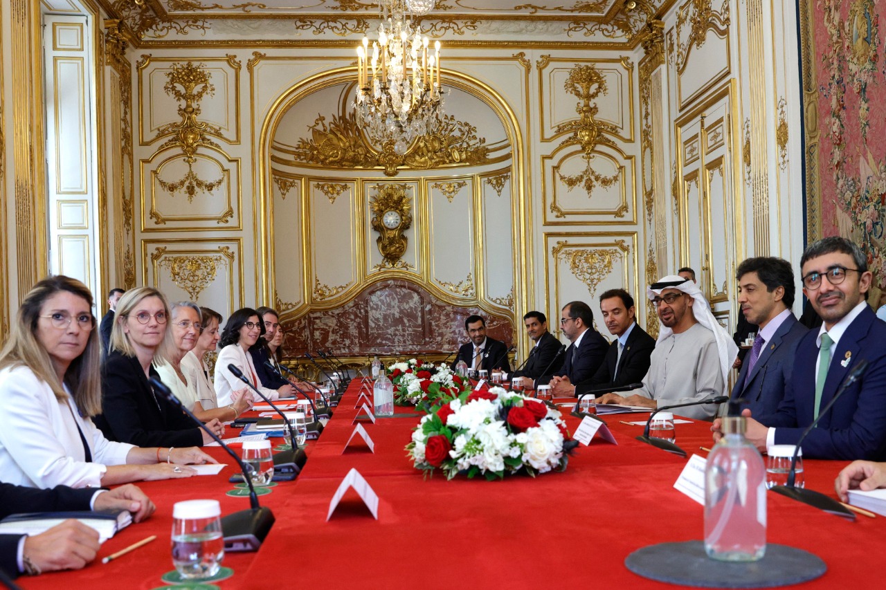 كما التقى رئيسة الوزراء الفرنسية إليزابيث بورن وعددا من طلاب دولة الإمارات الذين يتلقون تعليمهم في الجامعات والمعاهد الفرنسية وأطباء إماراتيين شاركوا في علاج مصابين خلال جائحة كوفيد -19، وفقا للوكالة الإماراتية.