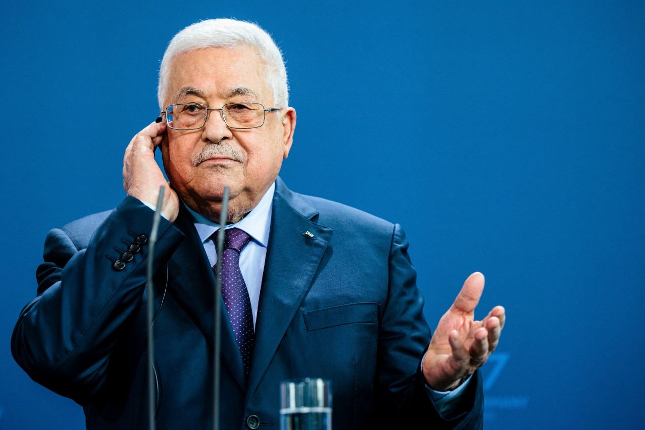 عباس خلال مؤتمر صحافي مشترك مع المستشار الألماني (ليس في الصورة) في مقر المستشارية في برلين (16 آب 2022، أ ف ب).