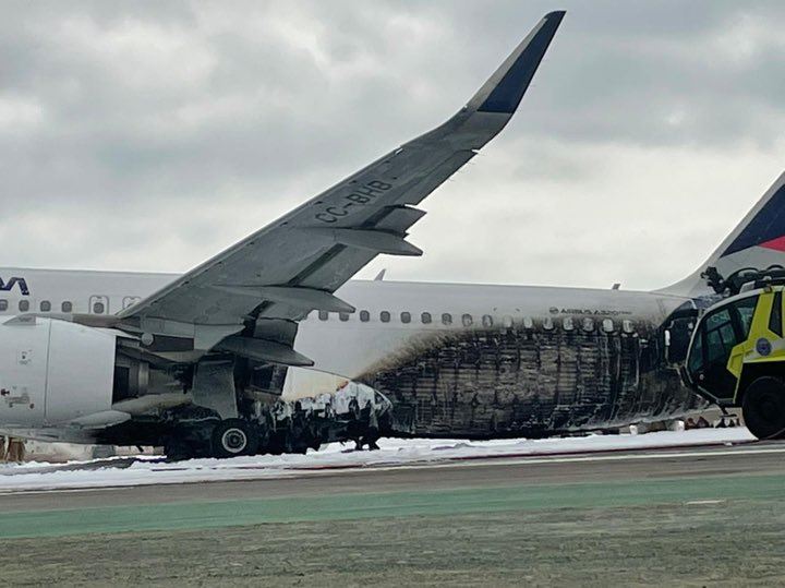 وأظهر مقطع مصور على مواقع التواصل الاجتماعي الطائرة وهي تصطدم بعربة الإطفاء أثناء انحرافها من على المدرج، ثم تشتعل فيها النيران سريعاً وينبعث منها الدخان قبل أن تتوقف.