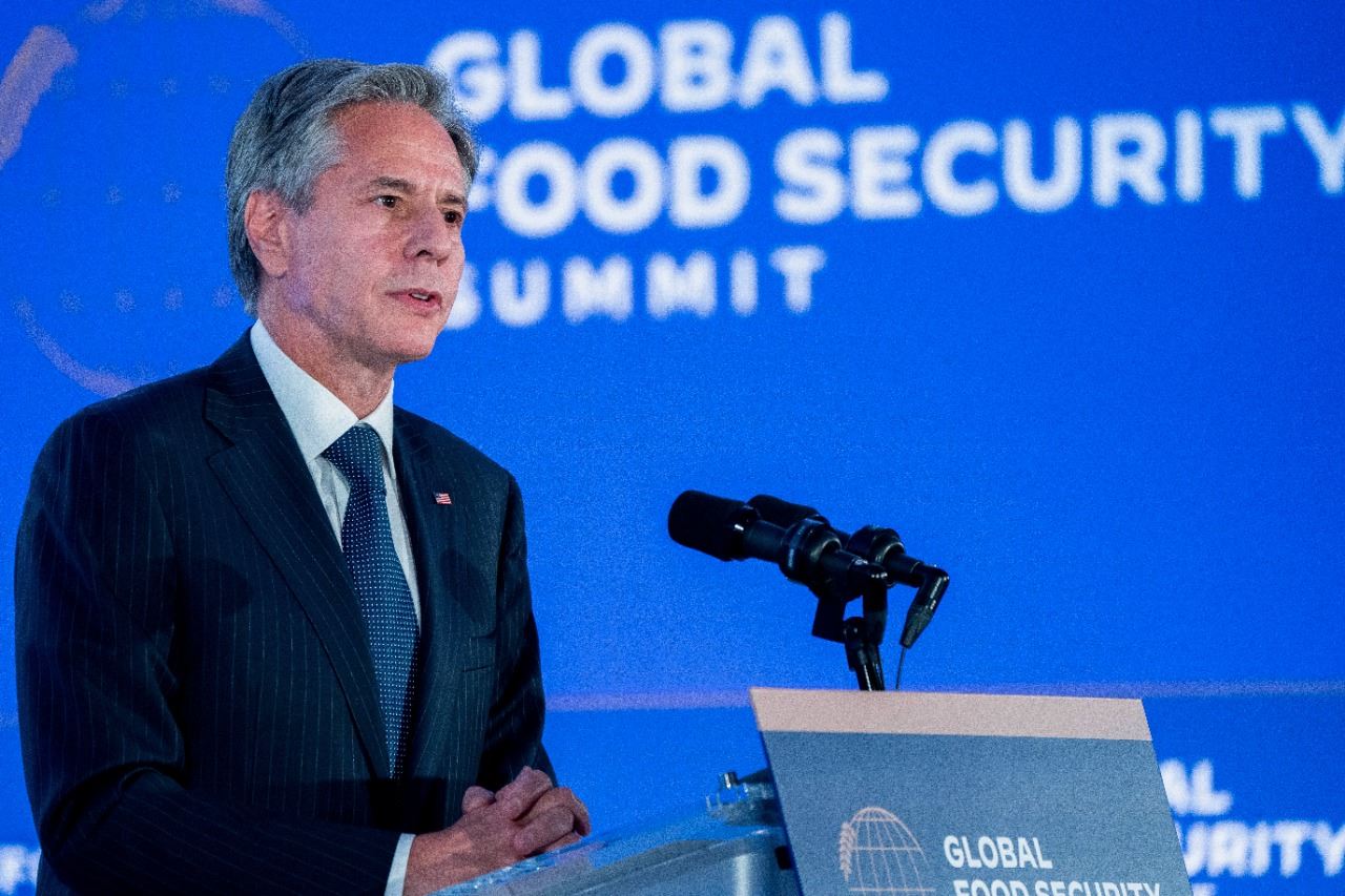 بلينكن يلقي ملاحظاته خلال الاجتماع الوزاري حول الأمن الغذائي في اطار الدورة الـ77 للجمعية العامة للأمم المتحدة في نيويورك (20 أيلول 2022، أ ف ب).