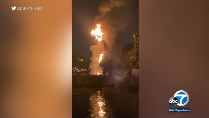 لقطة من مشاهد عرضتها ABC News لاحتراق تنين في ديزني لاند بكاليفورنيا.