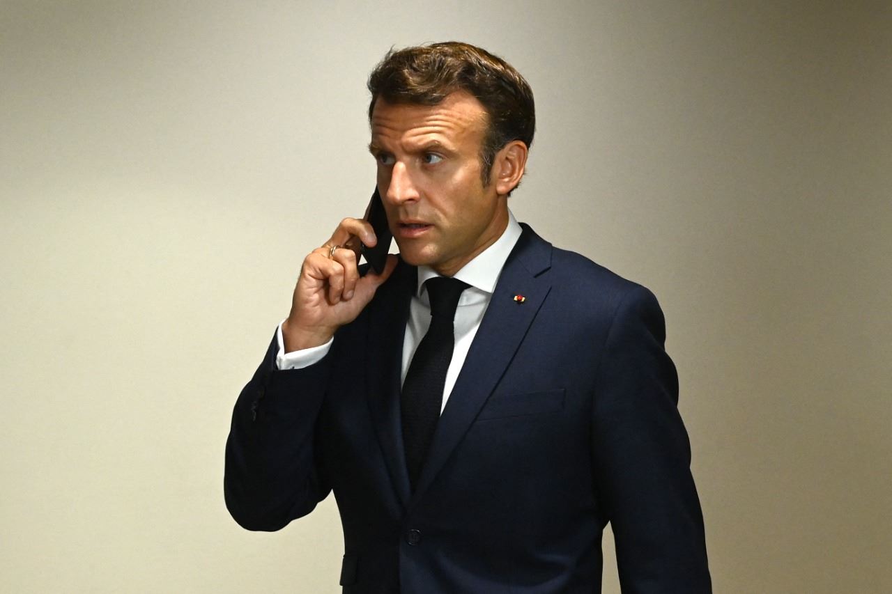 ماكرون لدى وصوله إلى اجتماع لزعماء الاتحاد الأوروبي وغرب البلقان في بروكسيل (23 حزيران 2022، أ ف ب).