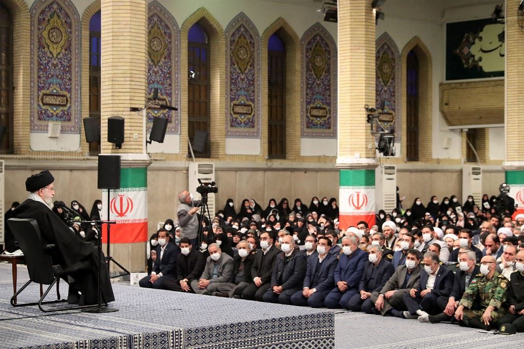 خامنئي يخاطب حشداً من الناس (أ ف ب).