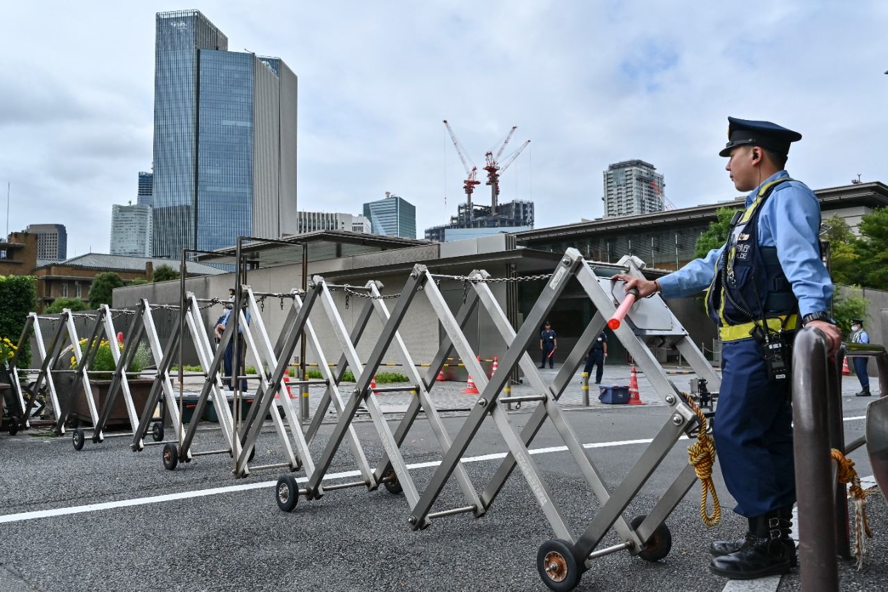 شرطي يقف عند مدخل المقر الرسمي لرئيس الوزراء في طوكيو (21 أيلول 2022، ا ف ب).