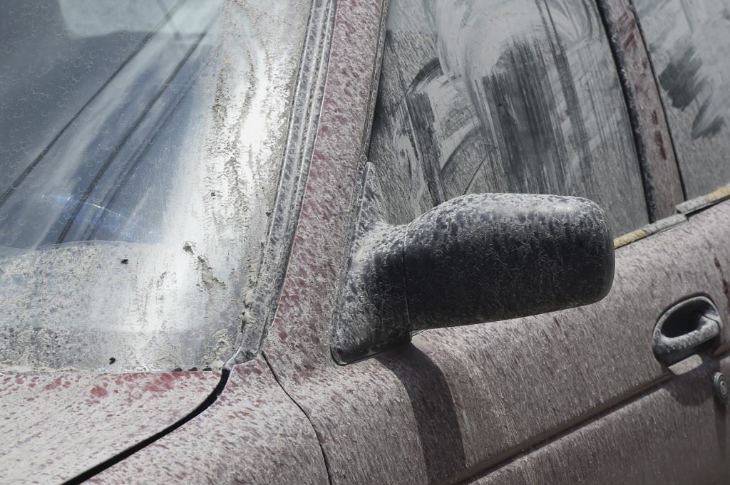 سيارة مغطاة بالرماد جراء بركان في المكسيك (أ ف ب).