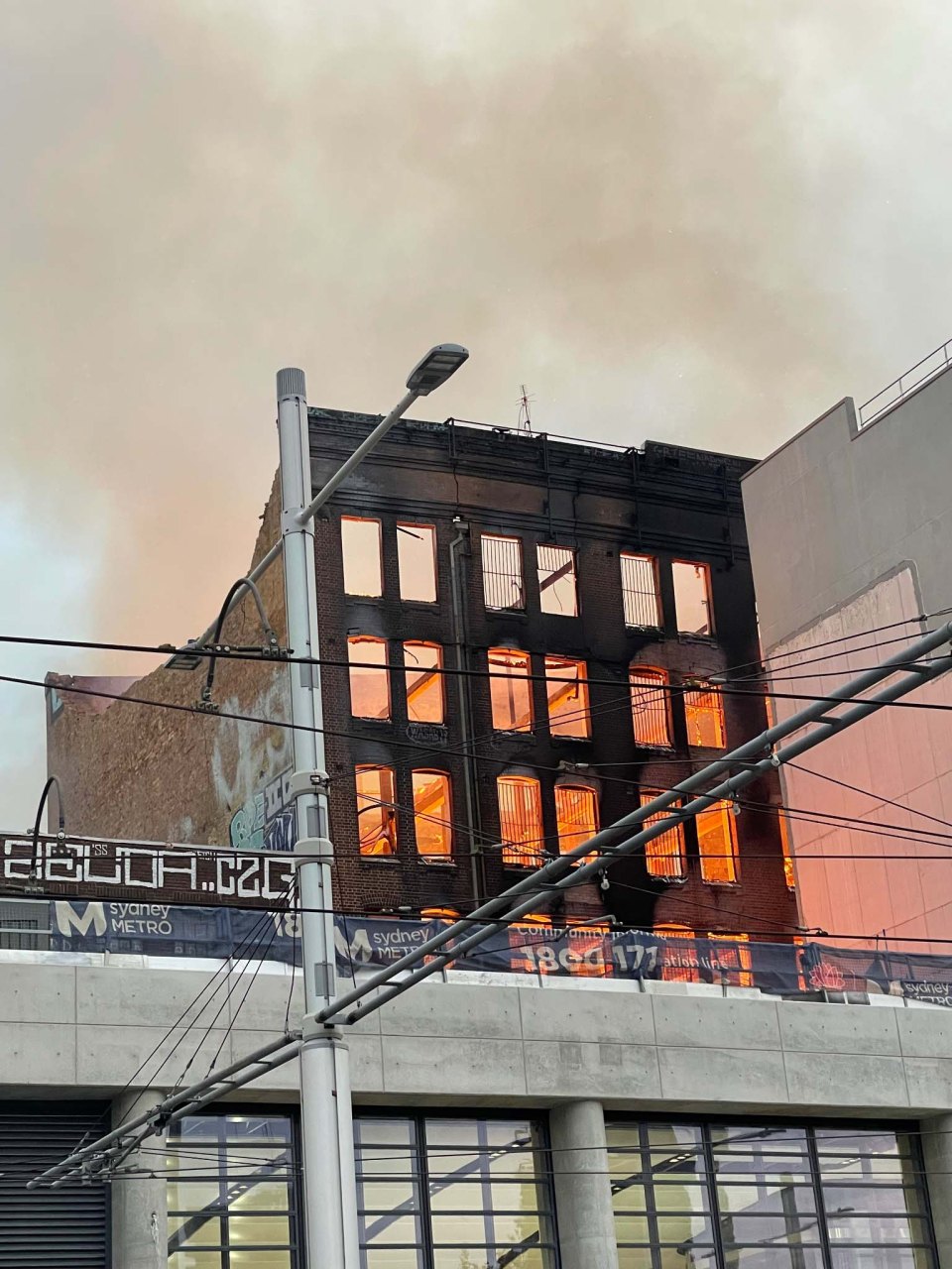 وانهارت أجزاء من المبنى. وقال مدير الإطفاء والإنقاذ في نيو ساوث ويلز ، إن 10 سيارات إطفاء كانت في مكان الحادث.