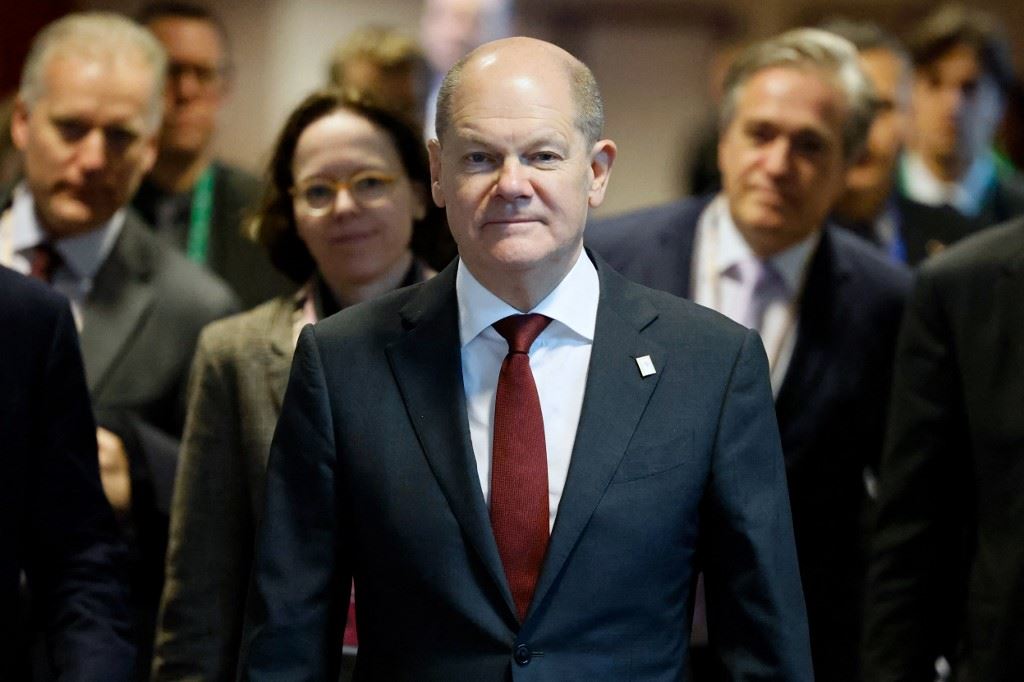 المستشار الألماني أولاف شولتز يغادر بعد قمة الاتحاد الأوروبي ، في مقر الاتحاد الأوروبي في بروكسل ، في 24 مارس 2023.