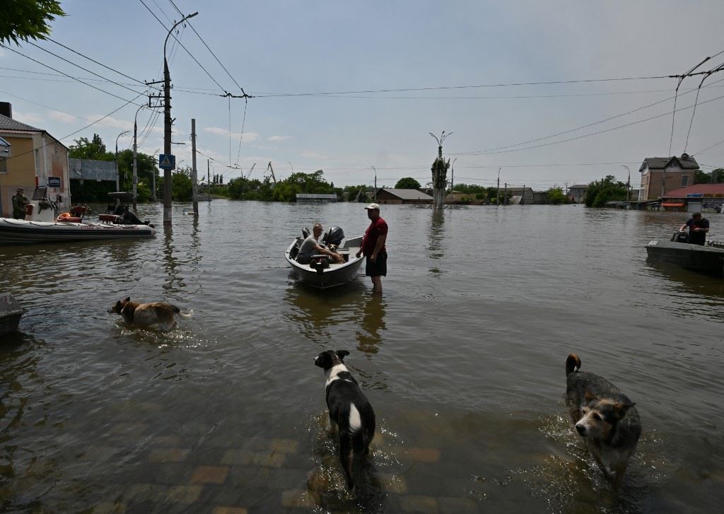 فيضانات في خيرسون جرّاء تدمير السدّ الأوكراني (أ ف ب).