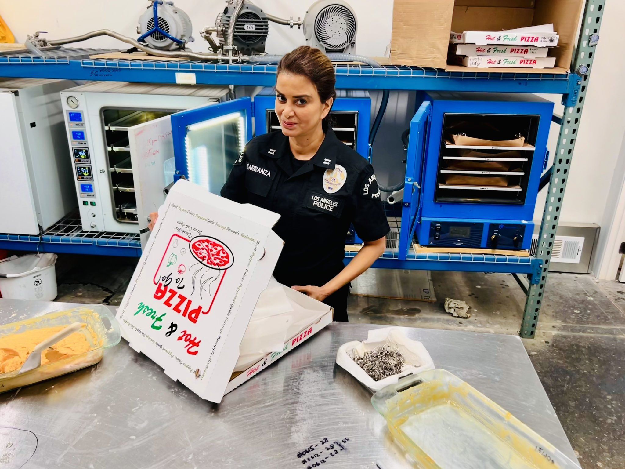Let's just say is not pizza! 🍕 Commander 70 David show me code 6 with #GND Lab Squad 7300 block Radford @LAPDNorthHwdDiv Your Lab Squad working to dismantle and render an illicit Super Lab safe. Operating in a business area next to a Pet Hospital! 🐾🐕 🥼 🧪 🧫 Doing their part… pic.twitter.com/Ma0EHZoOhn
