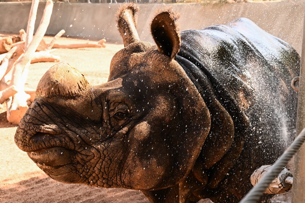 مع تجاوز درجة الحرارة 43 مئوية في مدينة فينيكس الأميركية لليوم الثاني والعشرين، استمتعت بومة النسر الأوراسية بالاستحمام لفترة طويلة أمس الجمعة بينما تناولت القرود والخيول مثلجات بعضها محلى بمشروب بارد.