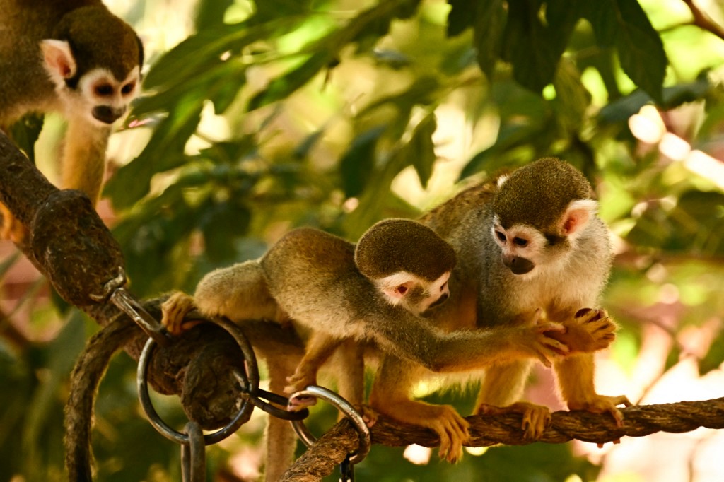 وفي قرية القرود، قامت قرود السنجاب الصغيرة بسحب الأطعمة المجمدة من الدلاء. وفي بعض الأحيان يحصلون على الماء المخلوط بشراب بارد ومنعش.