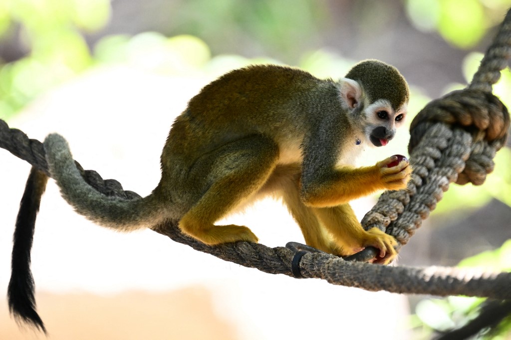 قرود السنجاب الشائعة تأكل العنب المجمد في حديقة حيوان فينيكس للحفاظ على برودتها خلال موجة حرارة قياسية في أريزونا (19 تموز 2023، "أ ف ب").