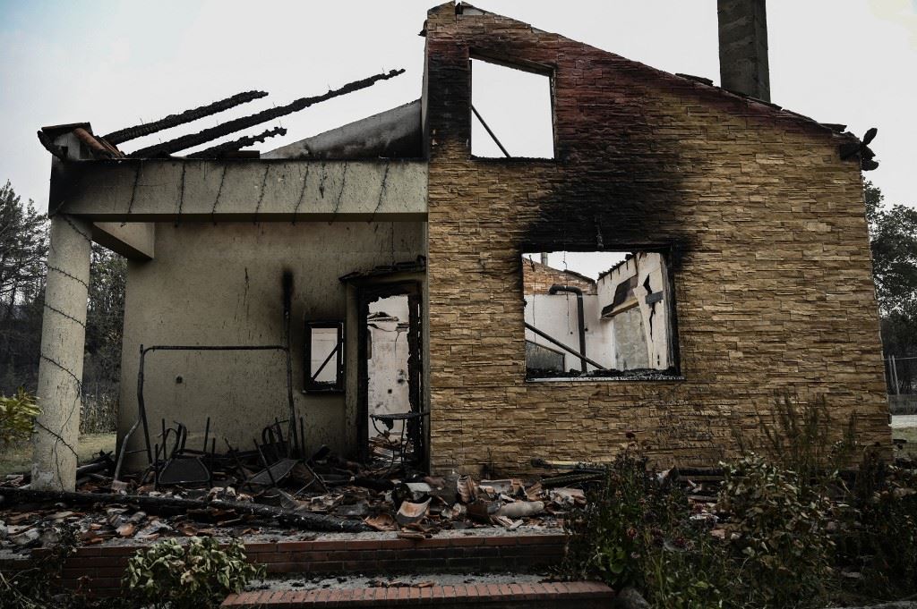 صورة التقطت في 24 آب 2023، تظهر منزلا دمرته حرائق الغابات في قرية كيركي القريبة من ألكسندروبولي (أ ف ب).
