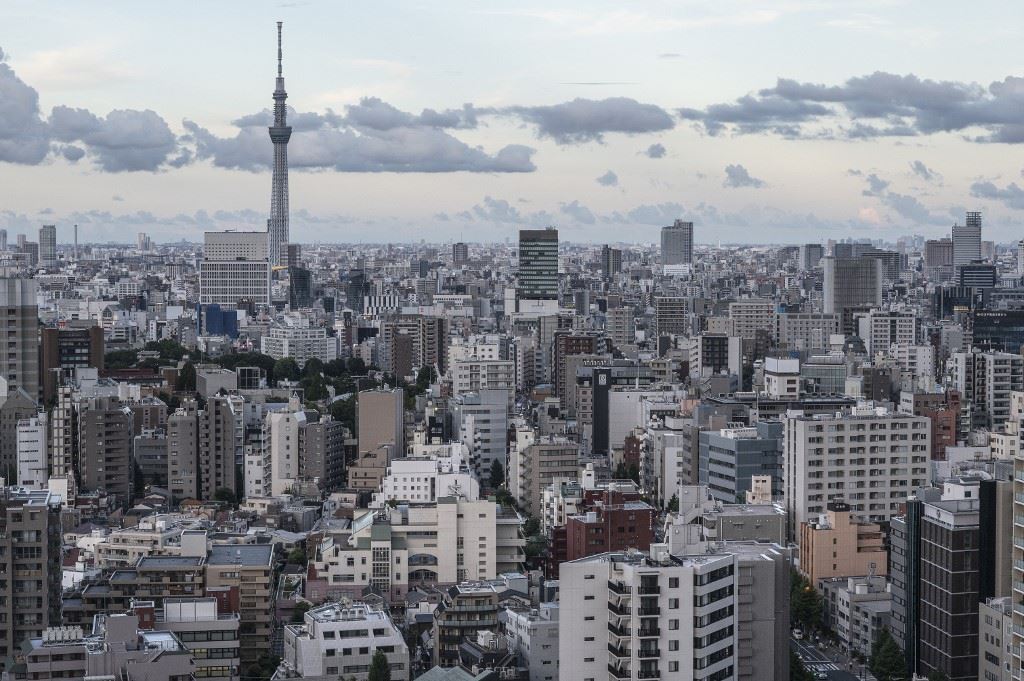 صورة التقطت في 7 آب 2023، وتظهر منظرا عاما لطوكيو سكاي تري (الى اليسار)، وهي منطقة تقع في منطقة سوميدا التي دمرها زلزال عام 1923 (أ ف ب).