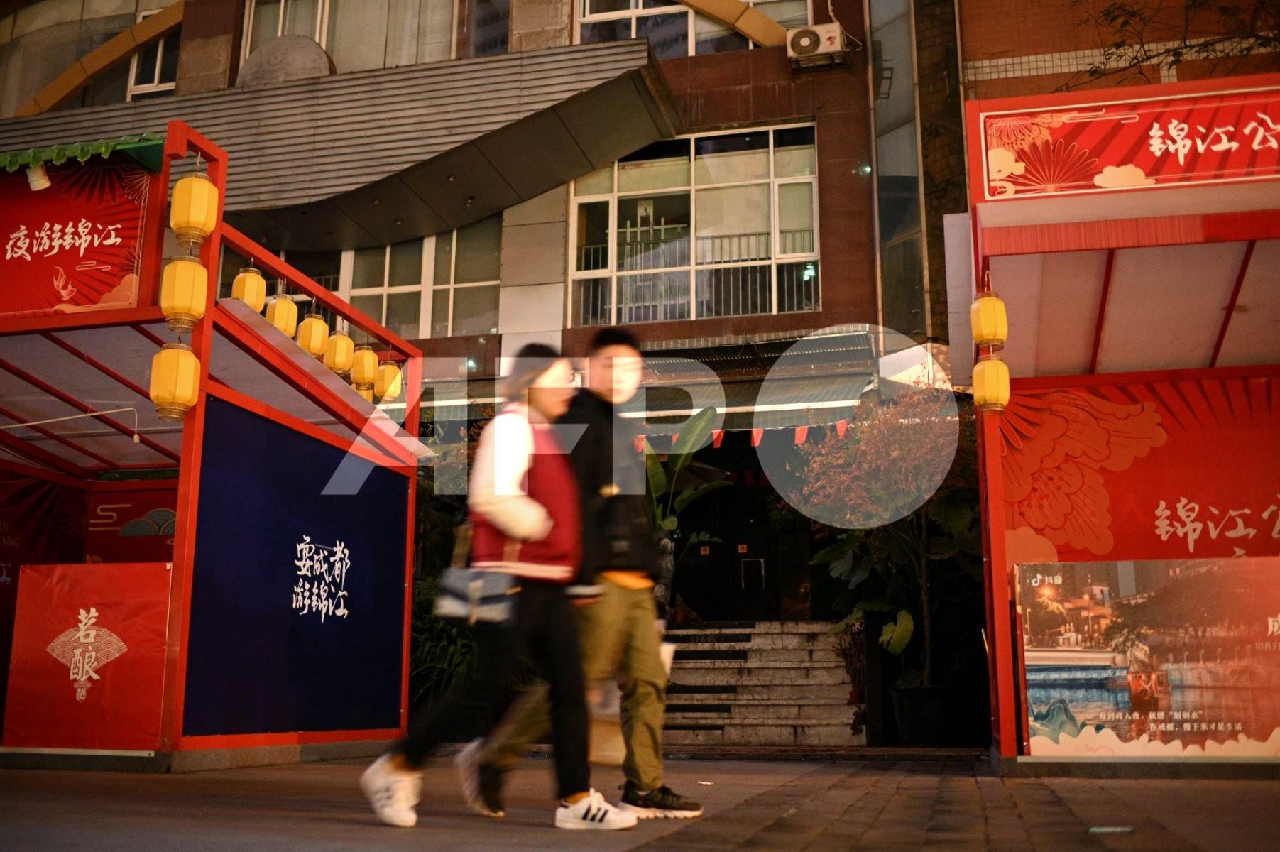أشخاص يسيرون أمام ملهى مغلق للمثليين في تشنغدو الصينيّة (أ ف ب).