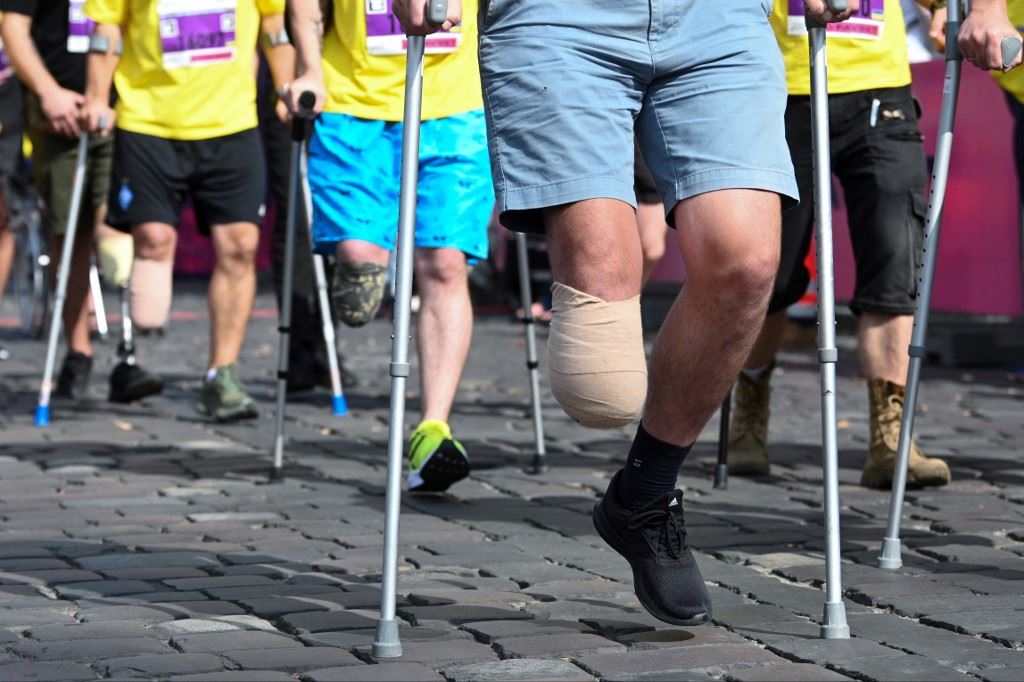 جنود أوكرانيون فقدوا أطرافهم يشاركون في نصف ماراثون في مدينة لفيف غرب أوكرانيا (3 ايلول 2023، أ ف ب).