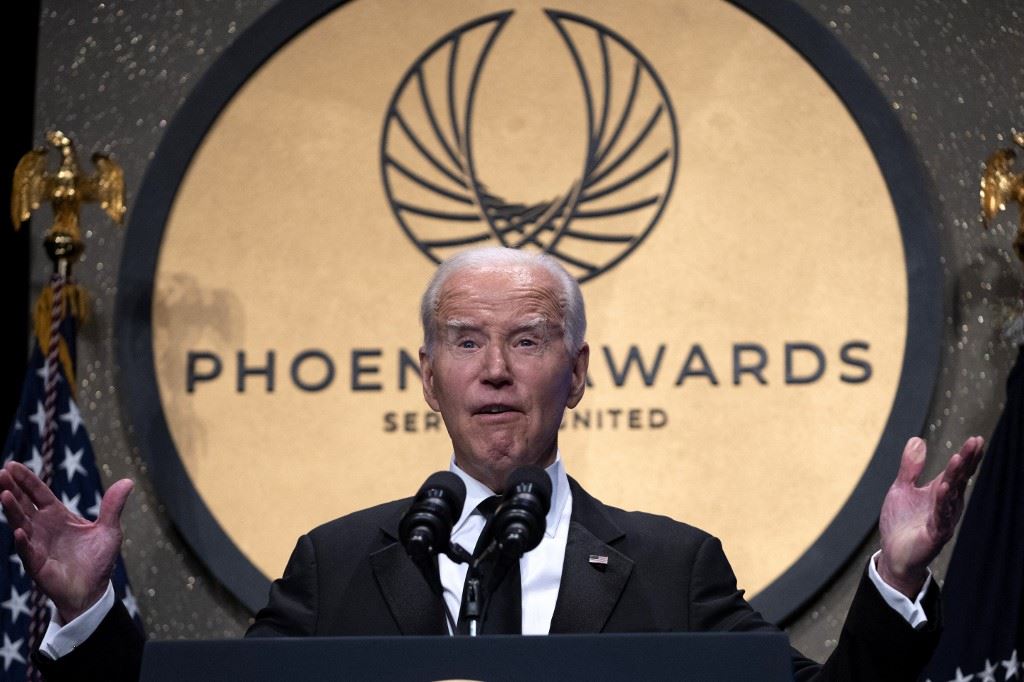 بايدن يتكلم خلال عشاء جوائز فينيكس في مركز مؤتمرات واشنطن في واشنطن (23 ايلول 2023، أ ف ب).