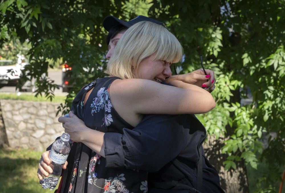 امرأة تبكي عند مركز تجاري احترق بعد هجوم صاروخي في كريمنتشوك بأوكرانيا (28 حزيران 2022ـ أ ب).