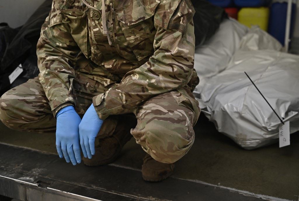 جندي أوكراني ينتظر في سيارة لتحميل جثة رفيقه من مشرحة ليست بعيدة عن خط المواجهة في منطقة دونيتسك، لإعادته إلى منزله (16 ت1 2023ـ أ ف ب).