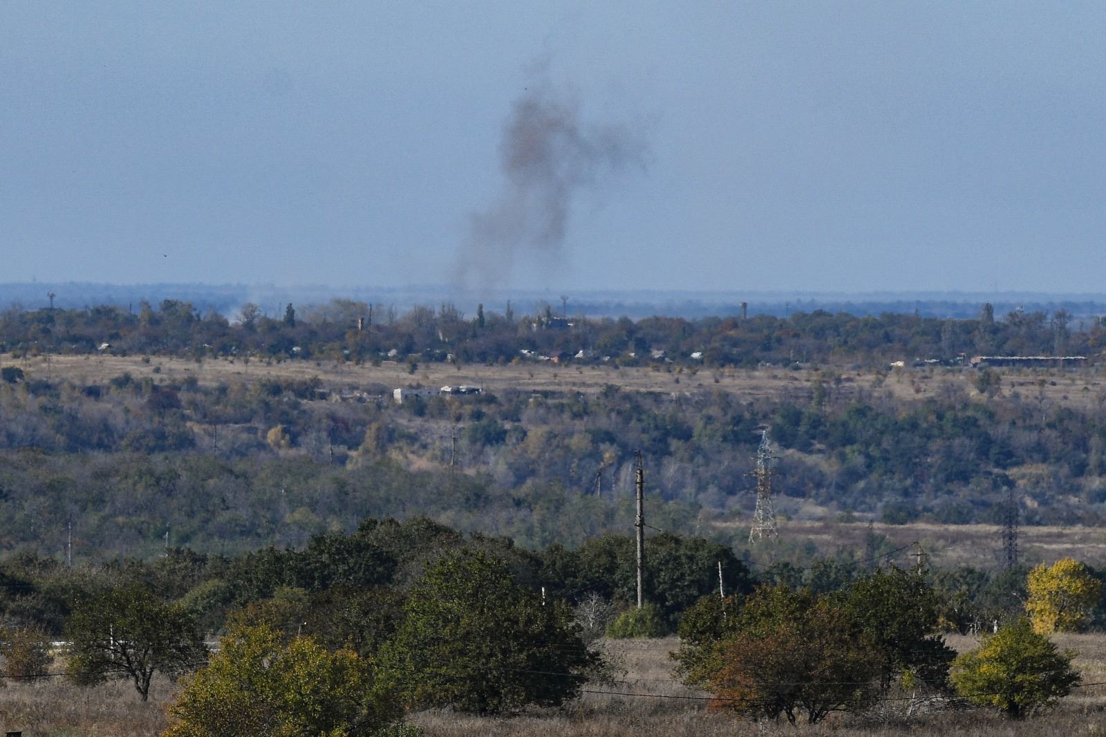 دخان يتصاعد فوق منطقة بلدة أفدييفكا (18 ت1 2023، أ ف ب).