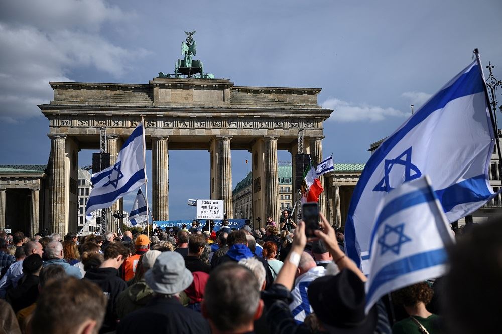وقالت الشرطة إن نحو عشرة آلاف متظاهر تجمّعوا عند بوابة براندنبرغ تضامنا مع إسرائيل وتنديدا بمعاداة السامية، علما بأن المنظّمين قدّروا عدد المشاركين بـ25 ألفا.