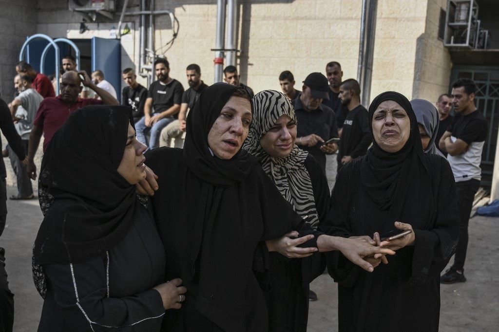 فلسطينيون خارج مشرحة مستشفى جنين (أ ف ب).