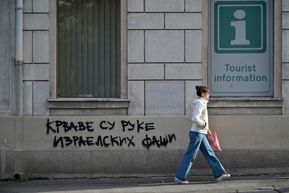 وفي الأسابيع الأخيرة ظهرت كتابات معادية لإسرائيل في أماكن أخرى في العاصمة الصربية.