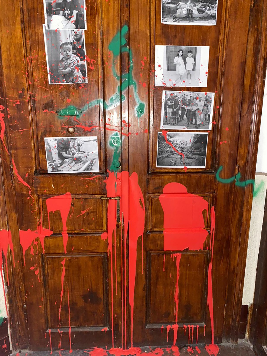 وقالت المنظمة إنّ البوابة الرئيسية لمركزها في العاصمة الصربية وجدرانه طليت باللونين الأحمر والأخضر وكتبت عليها بالطلاء الأخضر شعارات من بينها "هافر، اخرجي من صربيا"، و"إسرائيل تقتل الأطفال"، و"الحرية لفلسطين"، و"فلتسقط الصهيونية".