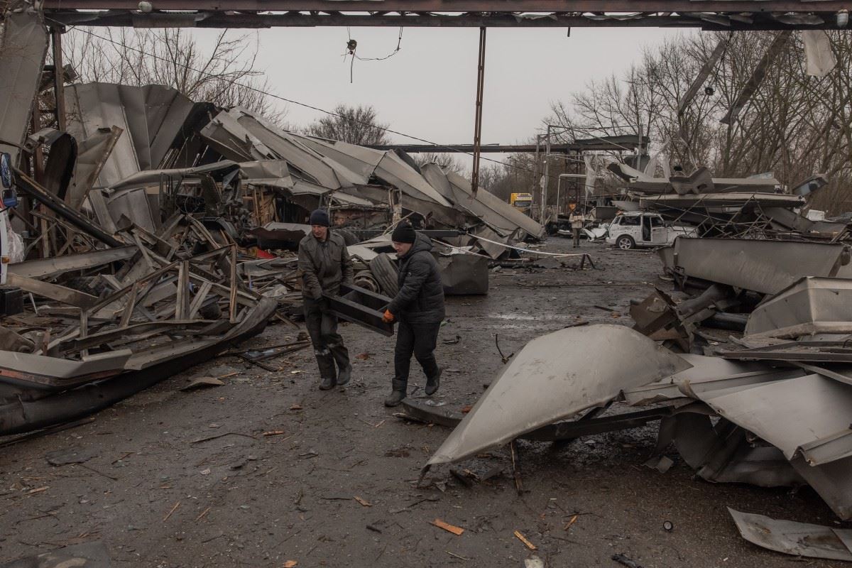 عمّال يرفعون الأنقاض في أعقاب هجوم روسي، في أوديسا (أ ف ب).