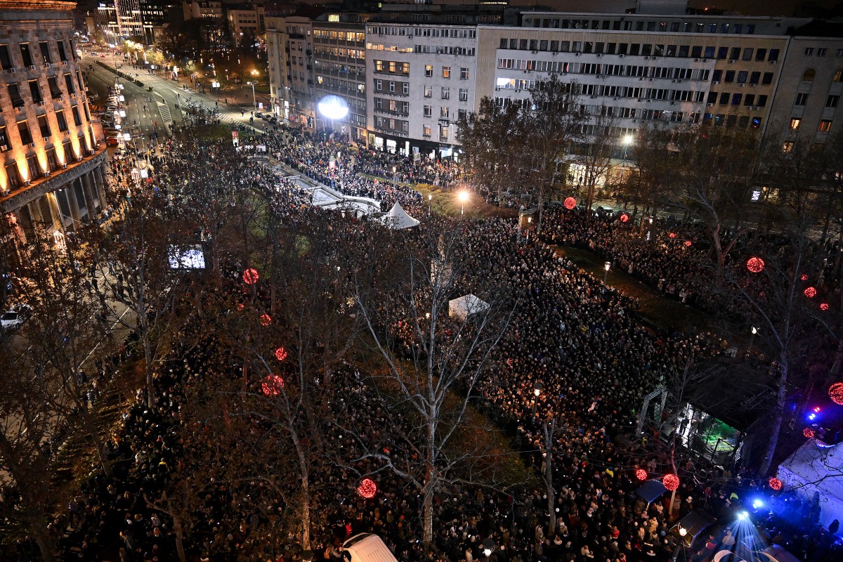 ووصف فوتشيتش الاحتجاجات الواسعة بأنّها مؤامرة أجنبية، محذّراً من أنّ صربيا بدون قيادته ستسير على غير هدى.