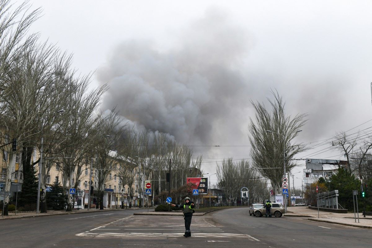 الدخان يتصاعد فوق المباني في أعقاب القصف الأخير في دونيتسك، أوكرانيا (أ ف ب).