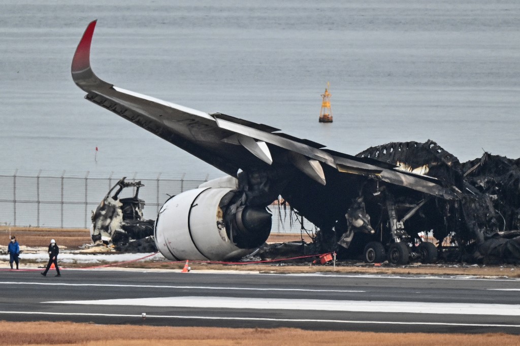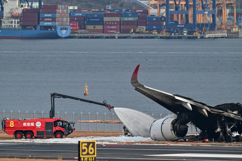ويُحقّق خبراء من اليابان وفرنسا وبريطانيا وكندا في أسباب الحريق، فيما يا يزال هيكل الطائرة المتفحّم وقطعها المتناثرة على أحد مدارج مطار هانيدا الأربعة.